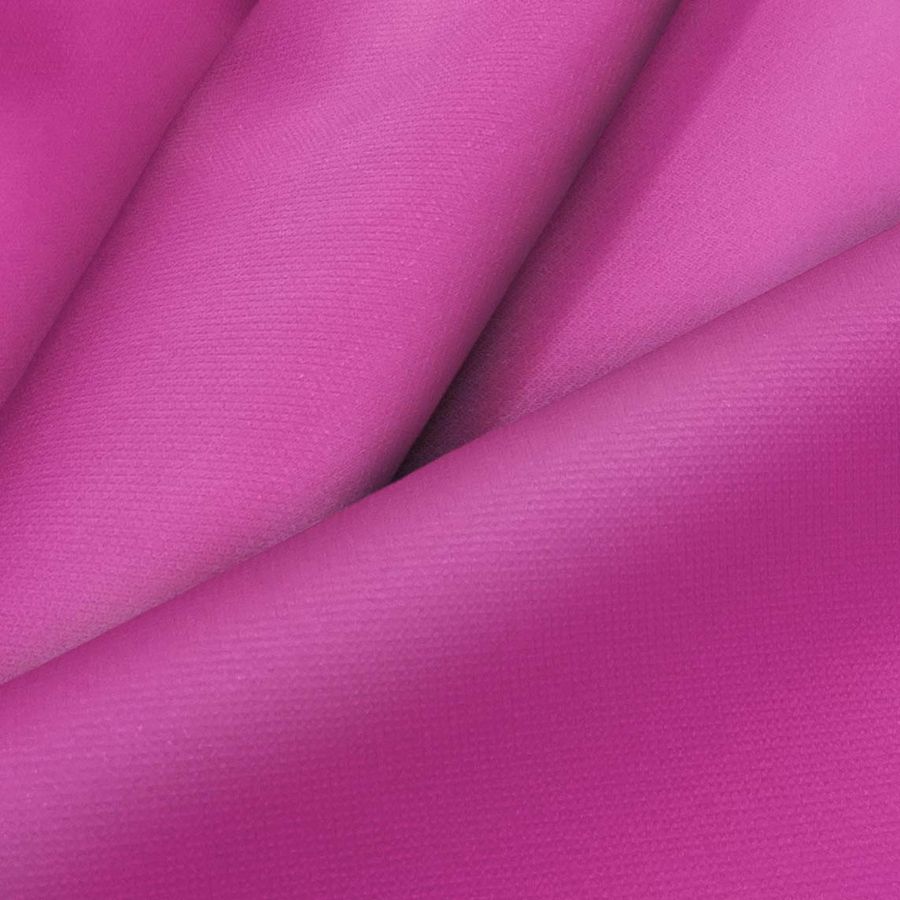 Le tissu de base, Tissu Coupe-Vent Imperméable - Target, est composé à 100% de polyester, avec un grammage de 116 gr/m2 et une largeur de 145 cm. Sa finition est imperméable, offrant une protection contre le vent et la pluie. La couleur unie imprimée sur le tissu est une variation de violet, avec une teinte primaire de magenta intense et une touche de rouge. Le CMJN de la couleur est 28 90 6 0, soulignant la présence du magenta. Cette couleur se marie bien avec des tons neutres comme le blanc et le noir, ainsi quavec des couleurs claires et foncées, comme le gris et le bleu marine.