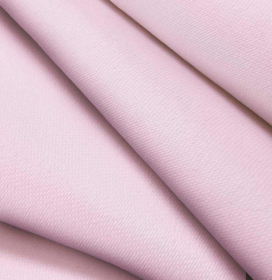 Le tissu de base, Toile Occultante - White Out, est un tissu technique en polyester avec une texture rigide et opaque, de couleur unie Rose Flamenco (CMJN : 0 36 0 0). Cette couleur symbolise la délicatesse et la féminité, et se marie parfaitement avec des couleurs neutres comme le blanc ou le gris, ainsi quavec des teintes plus intenses comme le violet ou le bleu marine.