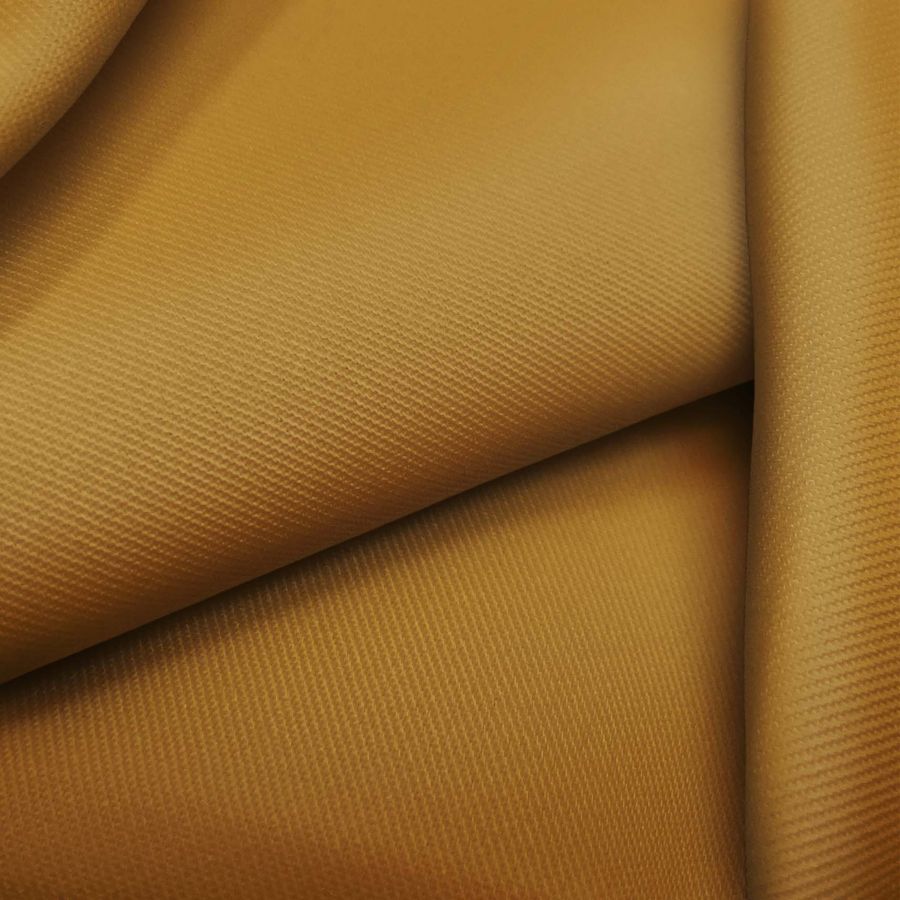 Le tissu de base est un Sergé - Prada, composé de 96% de POLYESTER et 4% dÉLASTHANNE, avec un grammage de 220 gr/m2 et une largeur de 150 cm. La couleur unie imprimée est Marron Selle, obtenue par la combinaison des encres cyan, magenta, jaune et noire avec des valeurs de 29, 55, 96 et 24 respectivement (CMJN 29 55 96 24). Cette couleur représente la texture et le toucher doux et délicat.